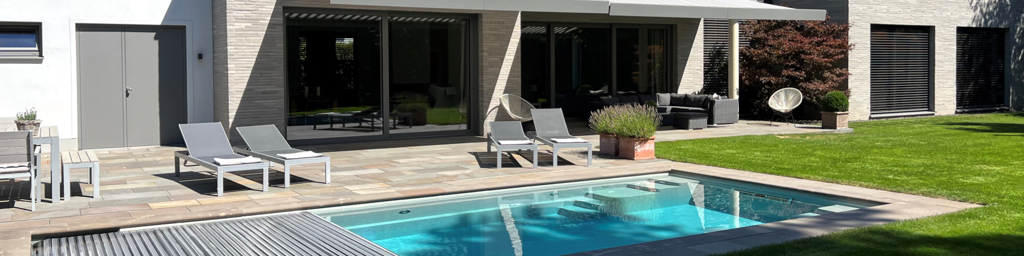 Der Schwimmbadbau ist seit über 40 Jahren unsere Leidenschaft. Wir bauen Schwimmbäder in jeder Größe und Ausführung, ganz egal ob Sie ein kleines Becken, einen Familienpool, oder ein Becken für sportliche Aktivitäten suchen. Zudem sorgen wir für puristische bis luxuriöse Technik: Unterflurrollo, Dosierautomatik mit und ohne Chlor, Elektrolyse durch Salz und LED Beleuchtung.
